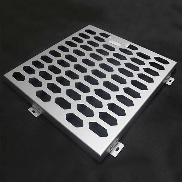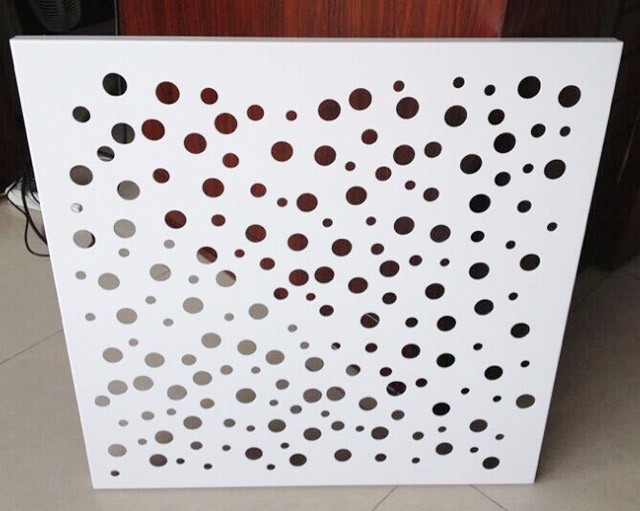與常規(guī)鋁單板相比,沖孔鋁單板的特征就是表面形狀各異的沖孔(包括圓孔、方孔、五角星、六邊形孔等),裝飾效果突出,也能夠在一定程度上起到降低噪音的作用。集裝飾性與實用性于一體,沖孔鋁單板在工程裝飾中使用的越來越多。